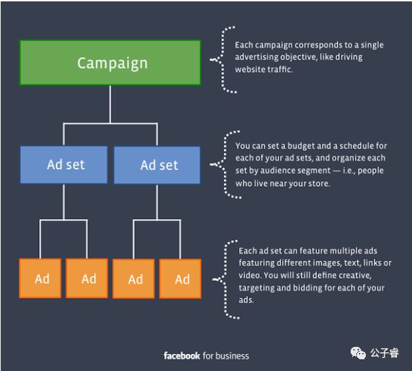 我们知道,facebook的广告是分为3个层级的:Campaign——> Ad Set ——> Ad.