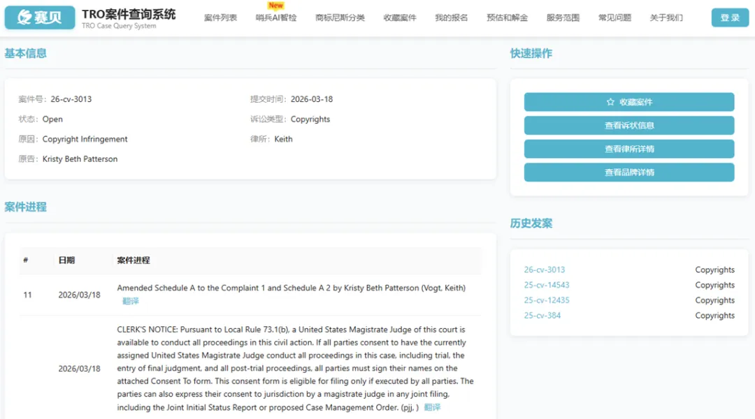 目前案件还未有重大进展,卖家可以在赛贝TRO案件查询系统免费下载诉状和跟进案件最新进度!(公众号菜单及赛贝知识产权官网均有入口)