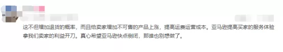 有卖家表示,这不但增加退货的概率,而且给卖家增加不可售的产品上涨,提高运费运营成本。亚马逊提高买家的服务体验,是在拿我们卖家的利益开刀。
