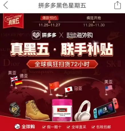 据悉,这是亚马逊海外购“限时快闪店”联合拼多多,瞄准的就是国内市场在「黑五」促销时将暴增的流量。毕竟,拼多多拥有4.296 亿活跃用户,这些人的购买力是目前的亚马逊所需要的,才不管它名声好不好呢!