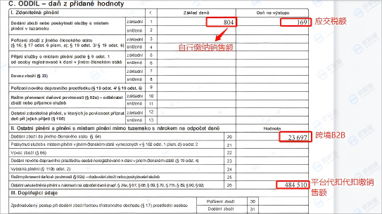 捷克VAT申报材料:销售报表(可从销售平台后台下载)、清关单据,若是零申报,则需零申报函。一旦卖家将VAT号上传至电商平台,并由平台代为扣缴增值税,卖家仍需按时向当地税务局进行增值税申报并缴纳相关税款。