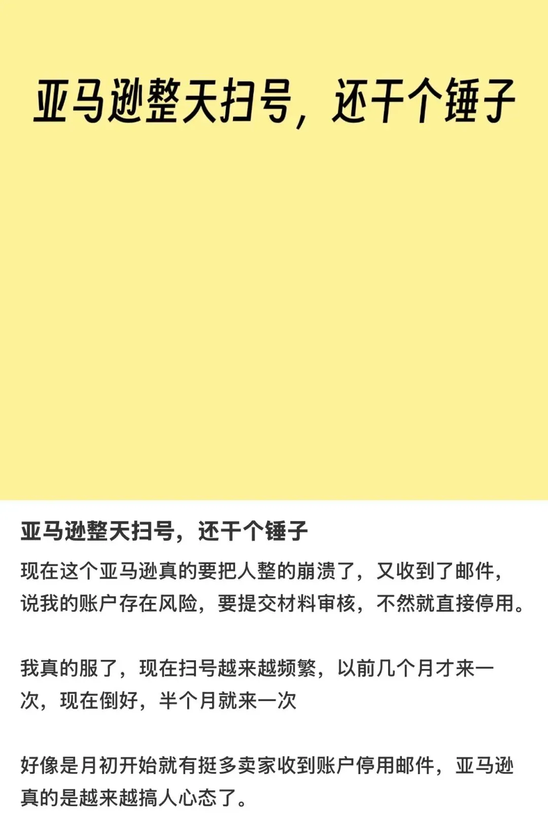 说实话,扫号本身不是新鲜事,亚马逊每隔一段时间都会清场。但这一轮的方式明显不同。
