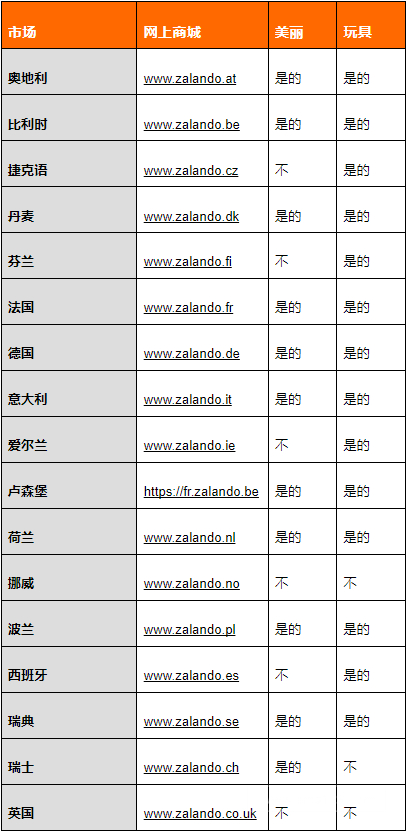 Zalando合作伙伴计划是卖家作为合作伙伴(品牌商、零售商、分销商)在Zalando平台上直接向Zalando的欧洲客户销售卖家的库存的途径。加入Zalando的合作伙伴计划,卖家就可以在17个(即将成为23个)市场上获得超过4200万的活跃客户。请在下表中找到这些市场的列表。
