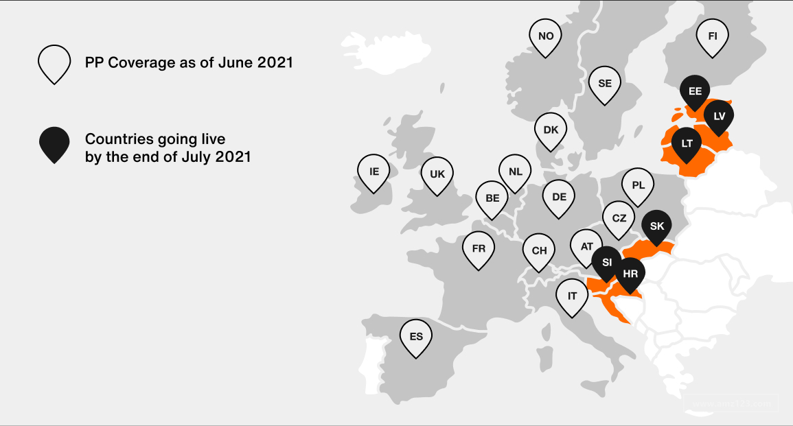 Zalando合作伙伴计划市场覆盖范围(截至2021年6月)
