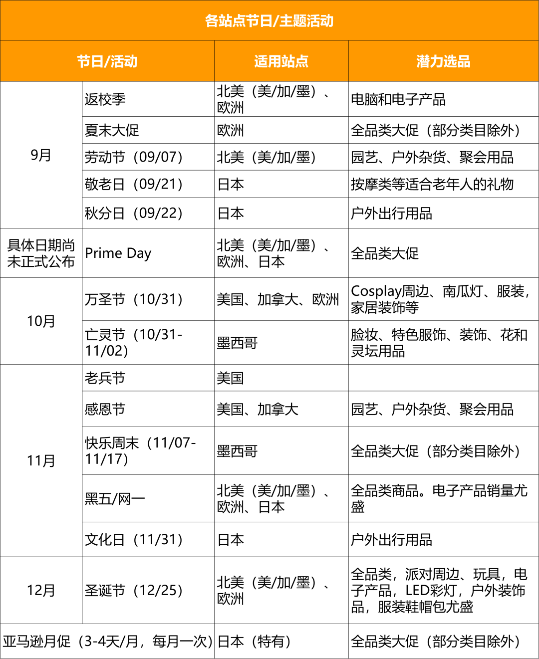 备战旺季第一步,您需要掌握北美/欧洲/日本站点下半年节日/主题活动和热门选品。