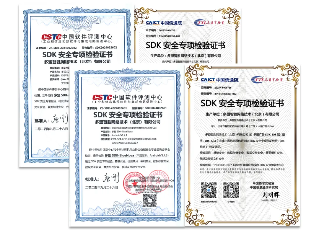 除出海广告外,国内数字广告业务在稳健中实现结构性升级。巨量引擎与腾讯生态持续保持高质量增长,微软广告在新领域取得显著突破。星广联投平台业务表现亮眼,多次登榜共建服务商消耗TOP榜并在服务商等级评级为S,彰显在达人营销与效果广告领域的综合实力。蓝标传媒旗下多盟SDK先后通过中国信通院与中国软件测评中心双端安全认证,并入驻全国SDK管理服务平台,夯实安全与合规基础。更具创新意义的是,蓝标传媒旗下多盟推出PixFlow、GoCal、Starlie三款AI原生出海应用,探索技术驱动的新增长场景,推动营销服务向产品化、智能化演进。
