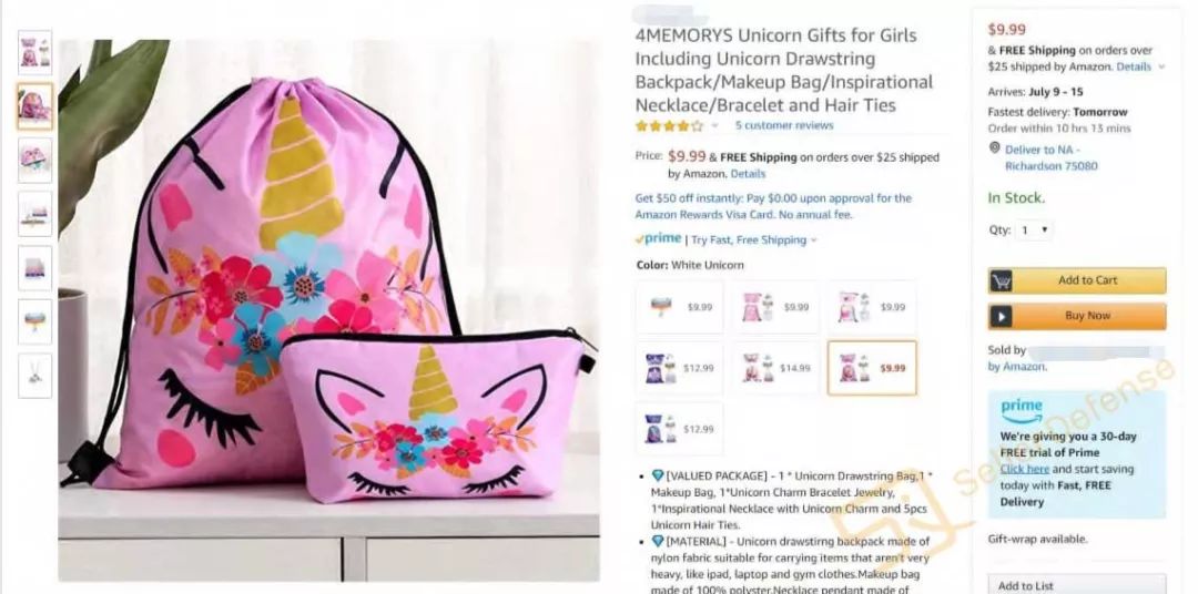 下图是被起诉卖家的刊登,侵权独角兽版权十分明显: