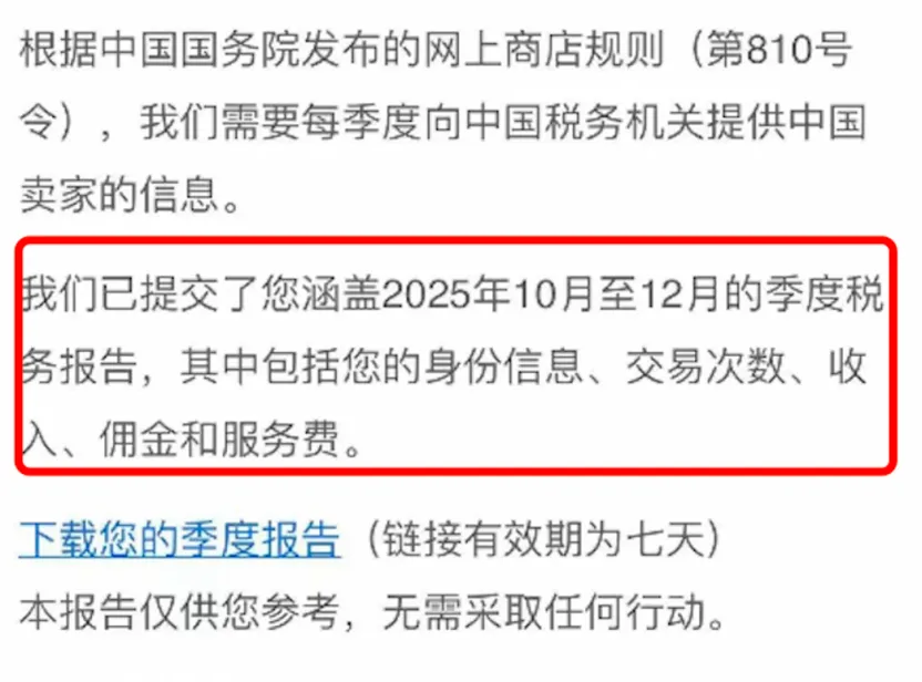 今天早上,不少卖家收到了亚马逊的邮件,平台已经同步了2025年10月至12月报送给税局的季度税务数据。这封邮件不只是通知数据生成,更关键的是把平台的口径给出来了。