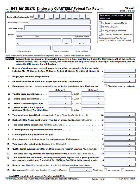 941表:雇主每季度向美国国内税务局(IRS)报告所支付的工资、工资税款和雇主支付的社会保险和医疗保险税款。