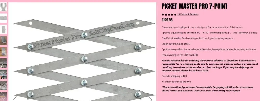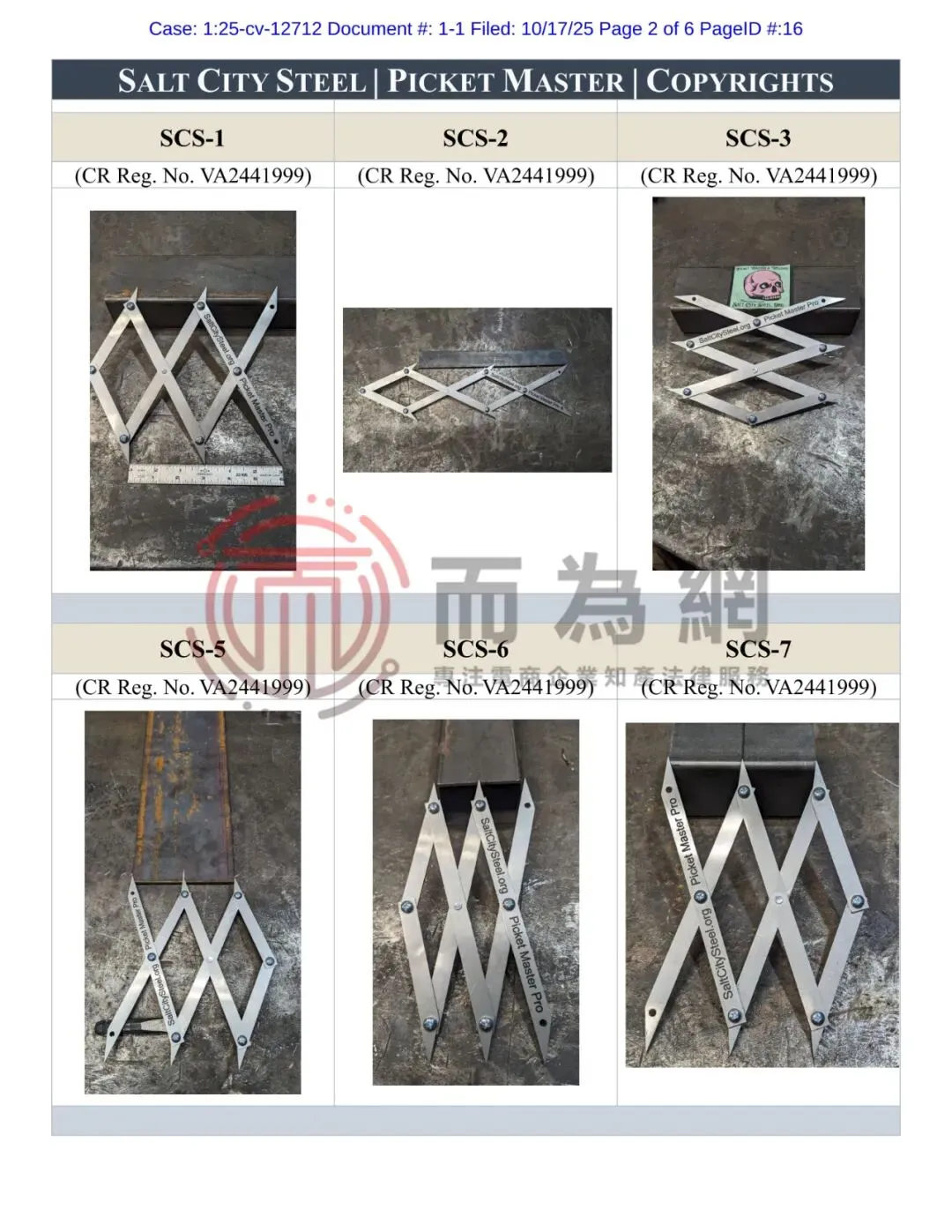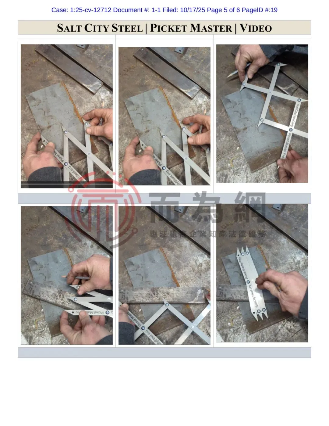 原告SALT CITY STEEL LLC是一家位于犹他州南盐湖城的小型家庭金属制造企业,主要负责生产和销售一款名叫Picket Master Pro的等间距布局工具。这款工具专为栅栏立柱、栏杆横杆的间距测量而生,通过三触点定位系统,能快速锁定管材中心位置。