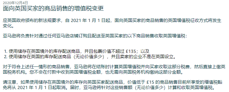 圣诞节购物期的库存应在2020年12月1日之前送达亚马逊运营中心。