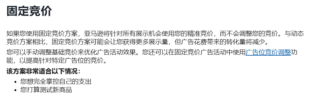 这时候,用“固定竞价”就是告诉亚马逊:“别管能不能卖,先把我的广告发出去!”