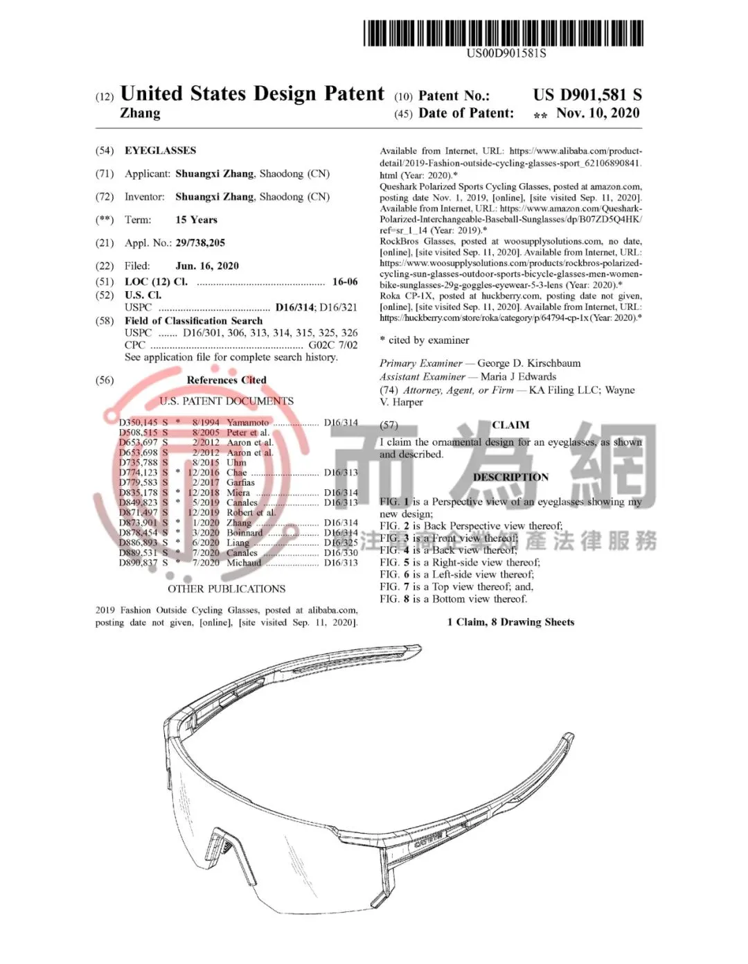 原告SHUANGXI ZHANG是一位来自中国湖南的个人,名下拥有一款户外运动眼镜外观专利,本案也是为该专利发起的维权。