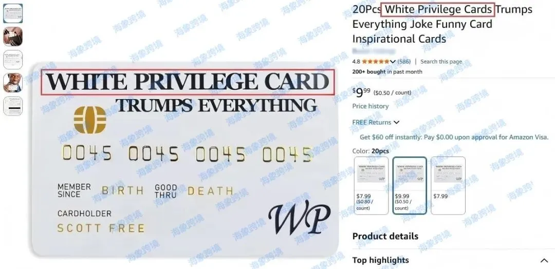原告品牌:WHITE PRIVILEGE CARD 白人特权卡