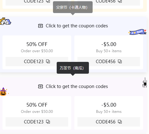 选择一些有节日折扣的商品专辑,让专辑下面的商品展示图带节日logo,增加网站美观度的同时,方便客户筛选活动商品