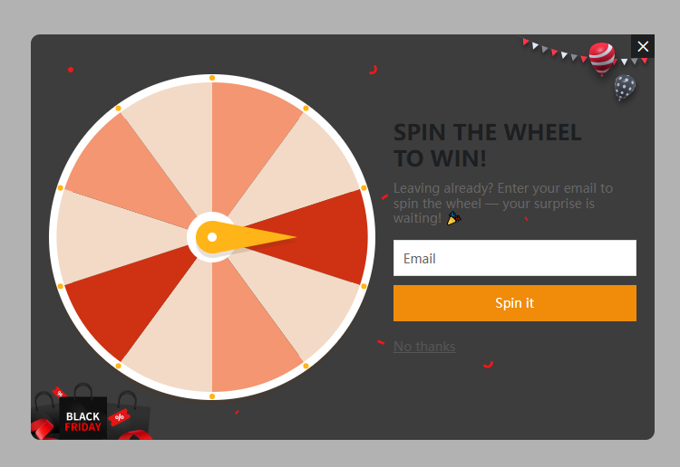 在用户离开网站时,提供抽奖转盘、优惠券弹窗、订阅弹窗等多种互动类型
