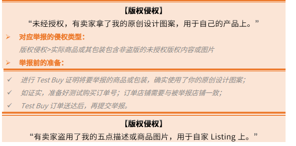 根据不同侵权行为的举报流程通过后台“举报违规行为(Report a Violation)”工具操作,错误的选择可能导致举报失败。示例如下: