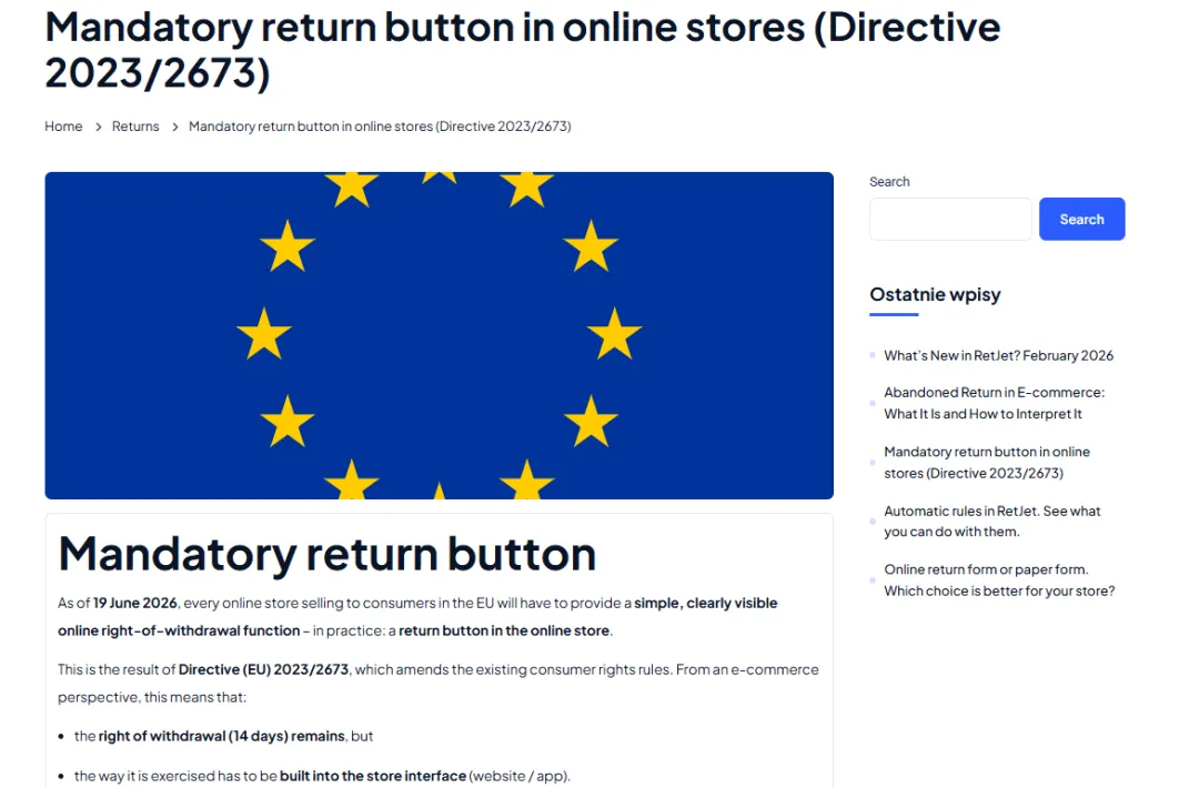 从2026年6月19日起,所有面向欧盟消费者的电商平台、独立站、APP、小程序,必须在显眼位置放一个"一键退货"按钮。