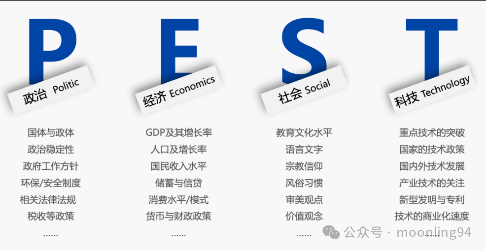 上面关于市场洞察的内容大致讲了下思路,在做市场洞察的时候我们我还可以用到一些工具,比如说PEST分析,安索夫矩阵(这个工具我经常用,在亚马逊产品矩阵,产品分析中多次用在,其实就是四个象限,通过市场和产品两个维度,可以区分出:1老产品、老市场;2新产品、老市场;3老产品、新市场;4新产品、新市场四个象限。)
