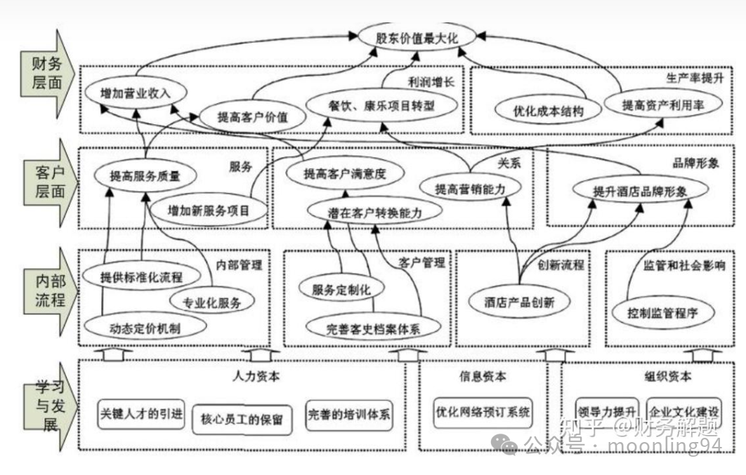 学习与成长维度:这个维度关注企业员工的学习和发展,比如员工培训、创新能力、员工满意度等。通过关注员工的学习和成长,企业可以不断提升自身的竞争力和创新能力。