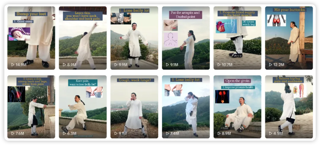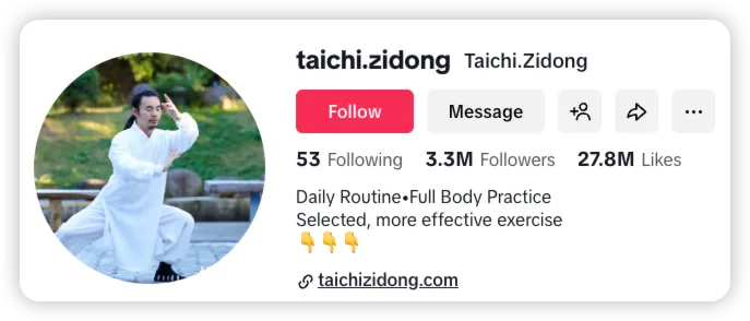 其中,较为典型的账号是两个传播太极拳的创作者@taichi.zidong和@taichiunited。