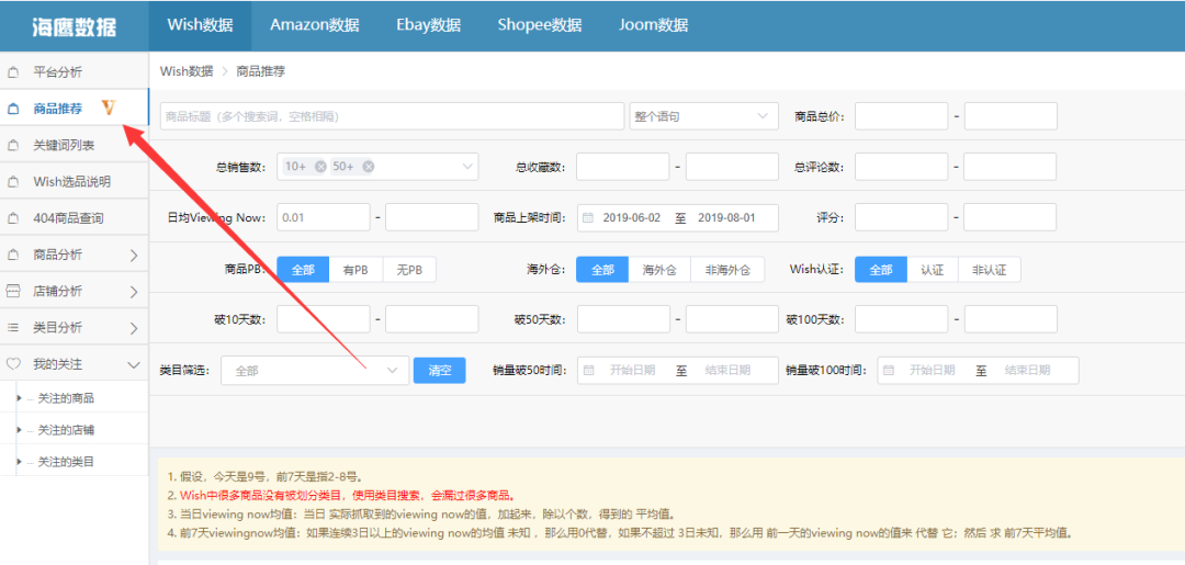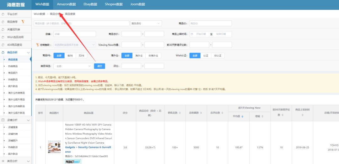 那么海鹰数据怎么用?我们以wish热销商品数据为例: