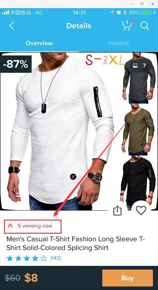Wish商品详情页面的 Viewing Now和商品的流量相关。