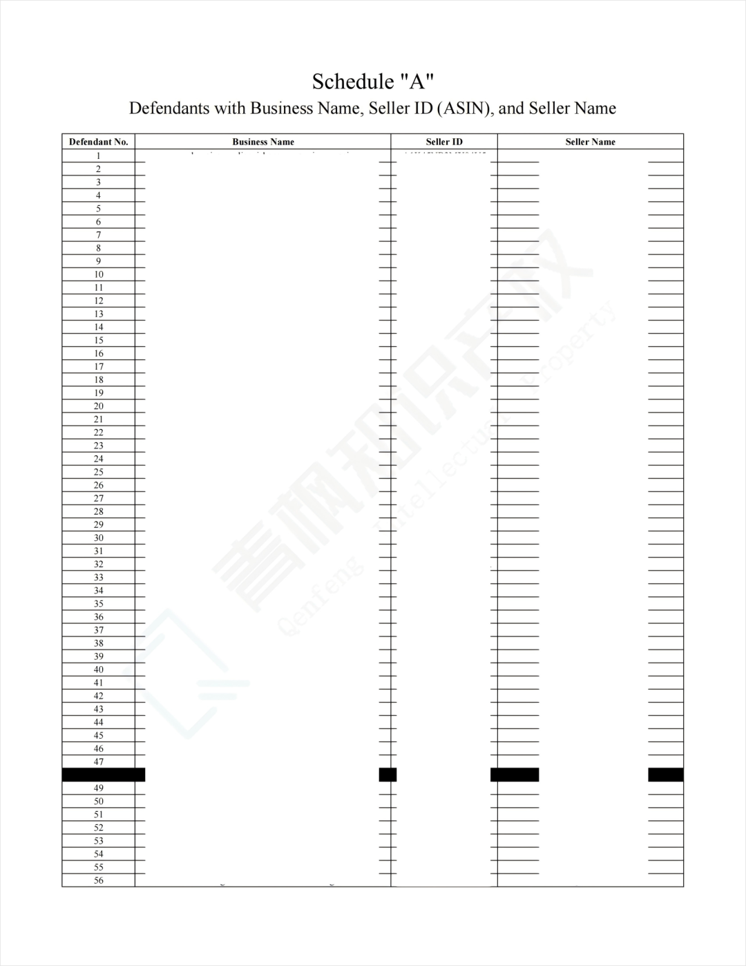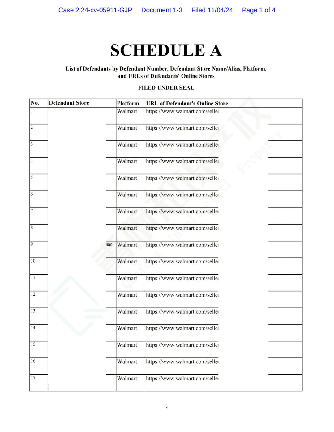 因为案件处于PI阶段,原告所有维权文件解封,从名单可知有64名沃尔玛卖家被告,名单包括店铺名称和链接