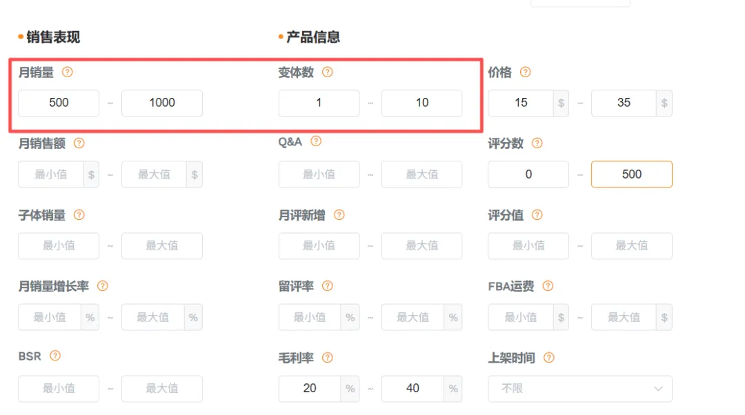 在卖家精灵等数据分析工具的“选品数据库”中,设置上述条件(价格、类目、重量、月销量等),批量筛选出潜在产品列表。