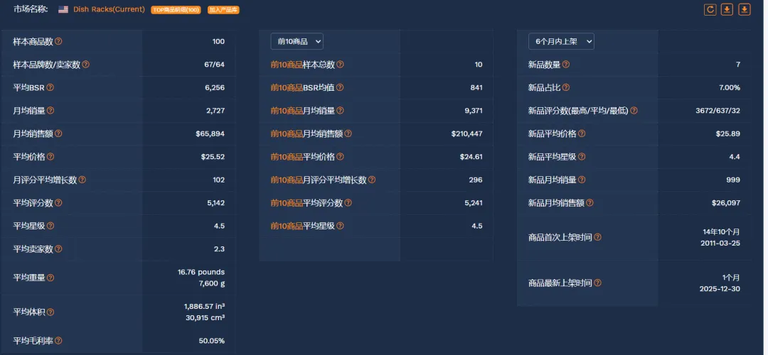 查看该类目下头部竞卖的预估月销量、上市时间、Review数量与增长速率。如果一个新品在短期内Review快速增长,往往意味着其销量在快速爬升。