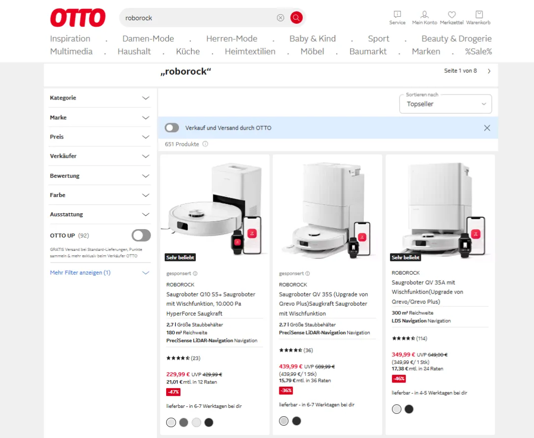 机器人大卖石头科技也成功布局OTTO,其多款智能扫地机器人获得“Sehr beliebt(很受欢迎)”标签;
