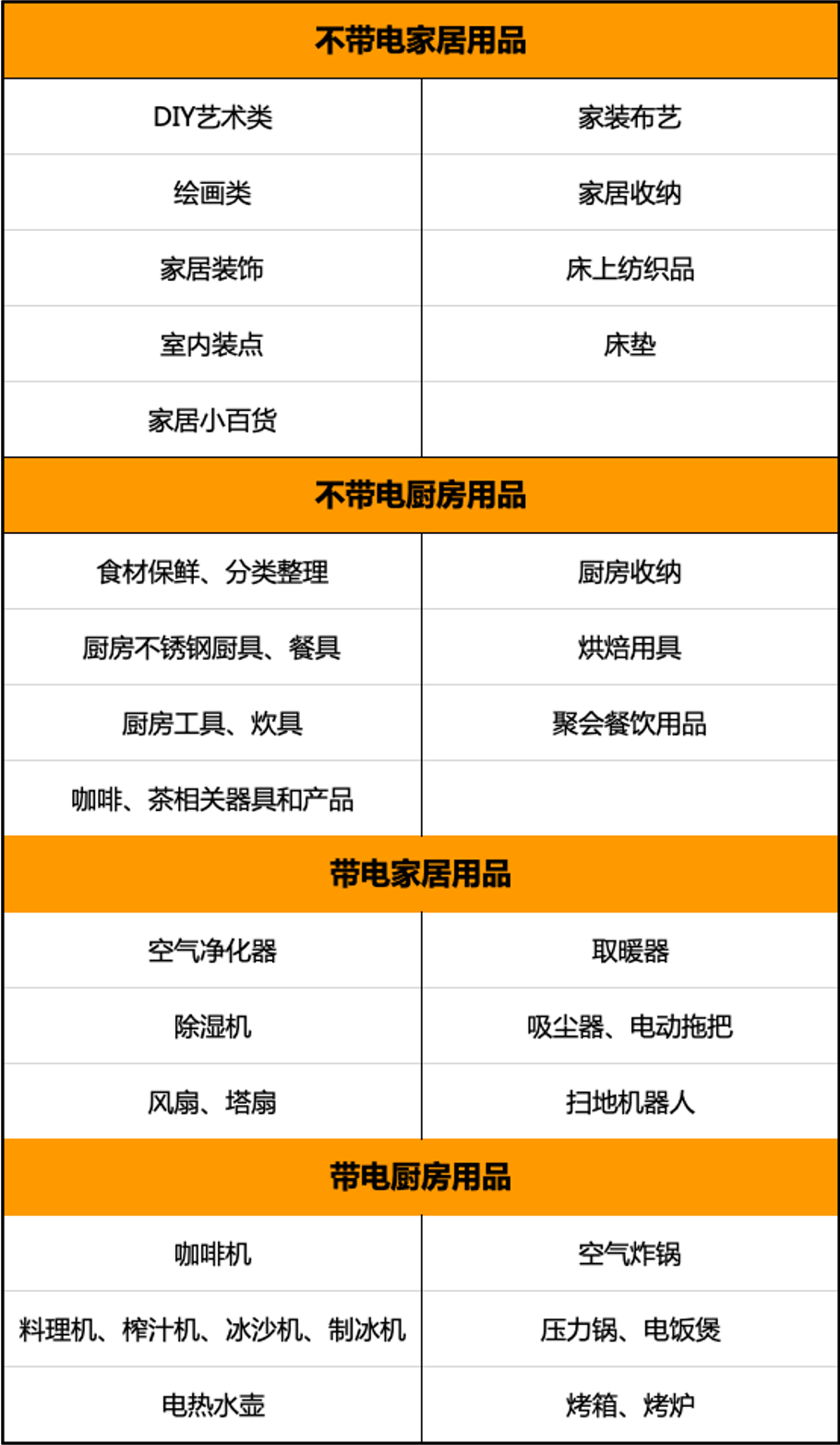家居与厨房用品选品目录: 1. 亚马逊消费者画像及2020消费趋势 2. 热卖子品类及运营贴士 3. 合规认证 4. 成功卖家经验分享 疫情爆发以来,海外消费者对厨房、家居类产品的需求量急剧增加。从国内知名品牌到创业型卖家,都看好这一品类巨大的市场潜力,纷纷上线出海。 2019年营业收入达27亿的顺德知名小家电品牌也看准了跨境电商的机遇,希望复制国内积累多年的成功经验。正如其海外业务负责人表示: 亚马逊全球开店的影响力越来越大,已经成为出口跨境电商的优选。我们带着线上基因而来,做跨境电商的第一选择,也自然是亚马逊。 这份2020家居与厨房用品选品指南已为你准备好,抢占品类机会点,一秒get商机! 壹 亚马逊消费者画像及2020消费趋势 消费人群 ▸ 以家庭主妇、工薪阶层、白领为主,他们消费力中上,对生活品质有一定追求,所以在乎产品的性价比,同时也追求品质和个性化 消费频次 ▸ 欧美消费者购买家居、厨房用品的频次都比较高,经常会每季度更换,尤其是床品、窗帘、家居装饰等。这些在中国消费者看来的“耐用品”,在欧美则是一种“消费品”,更高的消费频次也给中国卖家带来了更大的市场空间 ▸ 家用电器的消费频次会相对低一些。此外,由于带电产品相较不带电产品客单价更高、使用寿命更长,所以消费者对考虑置换新产品的时间也更会长 消费者诉求 ▸ 在居家和厨房用品上,总体来说消费者普遍注重性价比、产品选择多、质量稳定有保障、收货便捷快等,但各个站点消费者的诉求也略有差别: ▸ 美国 美国消费者认为家居和厨房用品不仅是生活必需品,更是一种生活态度,是表达自我的方式。但具体到对品牌、设计、材质的偏好上,由于家居子品类、细分类目繁多,所以不能一概而论: 健康相关的产品,消费者对材质、品牌的要求越高,如枕头、床垫 品味相关、能表达个性态度的产品,消费者对设计、材质的要求越高,如蜡烛、储物柜、窗帘 更换频次较高的产品,消费者更在乎性价比,即在价格便宜的基础上买到品质好的产品,如颜料、画笔、工具 ▸ 欧洲 相比美国人,欧洲人对于产品的舒适度要求更高,同时更注重产品细节,如在床品、窗帘的材质上,欧洲人普遍更青睐纯棉类产品 ▸ 日本 日本消费者则更倾向于清新、简约风格的产品,品牌忠诚度、在线复购率都很高,由于购买决策都经过深思熟虑,所以退货率也比较低。此外,日本消费者还普遍有以下诉求: 因为房间相对小、天花板低,所以非常看重产品是否方便收纳 注重细节,包括包装、标签、购物凭证 环保、高效率,即商品页面简单易懂,下单便捷,配送快 2020流行趋势 ▸ 厨房是热门消费场景: 受疫情影响,欧美大部分家庭处于居家状态,在家下厨成为日常必不可少的一部分,食物储物和不锈钢厨具、餐具也成为日常居家的必备用品,其中不锈钢厨具餐具也因其方便清洁、握感舒适,成为欧美人喜爱的材质之一 在家烹饪激发了外国人钻研美食的兴趣,54%的美国人表示即使疫情过后,仍会继续在家下厨做饭,46%的美国人则表示未来会更多在家烘焙[1],相信今年对厨房类产品的需求会持续强劲。除了厨房家电外,厨房收纳、烘培烹饪器皿器具都会是大热品类。 (点击即可查看大图) ▸ 家居收纳用品持续受关注: 受疫情影响,原本就爱收纳的日本民众,对能让居家生活更舒适、居家办公更高效的家居用品有更多需求,长期来看,食品收纳、厨房收纳、衣物收纳、大件收纳等的需求也会持续强劲 给卖家的参考建议 ▸ 家居用品: 在既有产品上增加小功能:卖家可以针对消费者日常生活中的小烦恼,对现有产品进行改进,这样最普通的家居小物也能让消费者眼前一亮 在材料的选择上,若能使用可回收材料,会更受消费者青睐 考虑个性化方向:由于家居产品大多数具有多种属性,如材质、花色(颜色和图案)、样式、尺寸,所以建议卖家更多考虑个性化,并在控制成本基础上给出具有竞争力的价格,就有可能在自己所在的子品类占有一席之地 考虑定制化方向:欧洲五国消费者对于相同产品的喜好也略有不同,如床垫,德国人喜欢偏硬质地,法国人则喜欢较为松软的床垫,所以建议卖家可以针对不同区域顾客的偏好做定制化的产品设计 建议中国卖家在独创性和品质上下功夫,这样即使很多美国本土品牌占据上游优势,也能获得更大的生存空间和灵活度 寻找细分品类,多留意近年来增长迅猛的小品类,可以从市场容量、增长速度、产品难度系数等维度考虑是否进入,如近期,居家艺术手工品类(Home – Arts、Crafts & Sewing)下的织物(Fabric)、花布等品类就表现不俗 根据形势变化即时调整站内外推广,例如,由于近期人们宅家更多,会花更多时间在娱乐休闲上,所以视频媒体类网站/App流量都急剧增长,如YouTube、Tiktok、Instagram、Facebook,卖家可根据实际产品情况,考虑是否把自己的选品和这些流量趋势绑定在一起,促进销售 家居生活用品也适合在节假日作为礼品赠送给亲朋好友,在产品描述、包装上也可以考虑加入相关内容 智能家居也是未来一大趋势,有兴趣的卖家可以考虑对接智能家居Alexa ▸厨房用品: 中国一直是厨房用品生产大国,产品物美价廉,中国卖家可以充分利用产业带优势 一定要持续关注产品质量,注重性价比,以此为突破口赢得欧美消费者信赖,扩大品牌影响力 关注家居厨房小家电,家电主要分为大家电(如