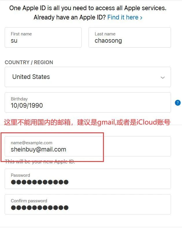 然后填写个人注册资料,最好是如实填写真实信息,尤其是邮箱一定不要用国内的QQ,163等邮箱地址,国内的注册不了,要用国外的邮箱,这里我推荐谷歌Gmail。
