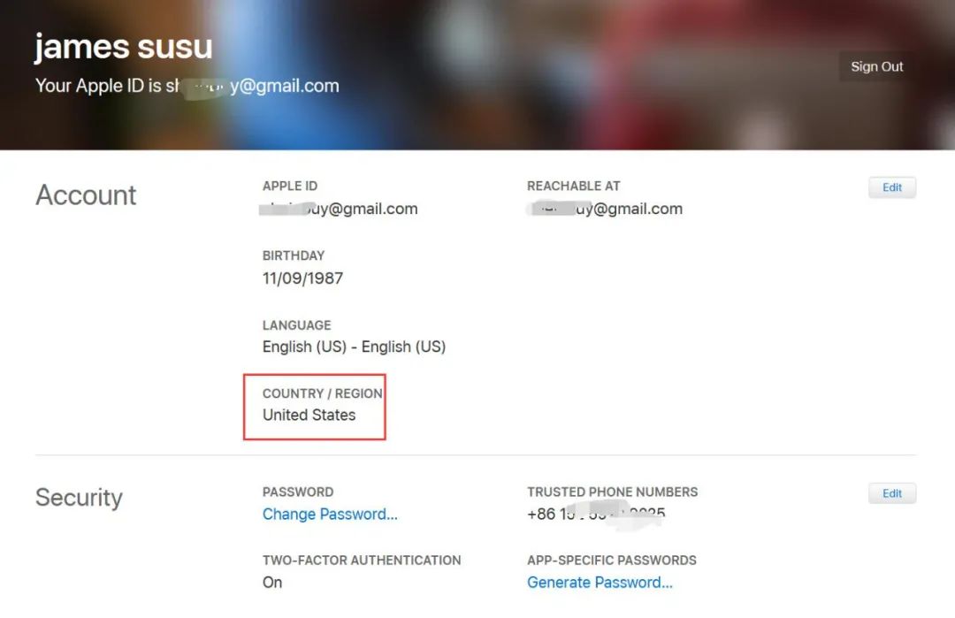 到这一步,账号已经注册完成,可以登录账户看看你的个人资料,国家是显示美国的。