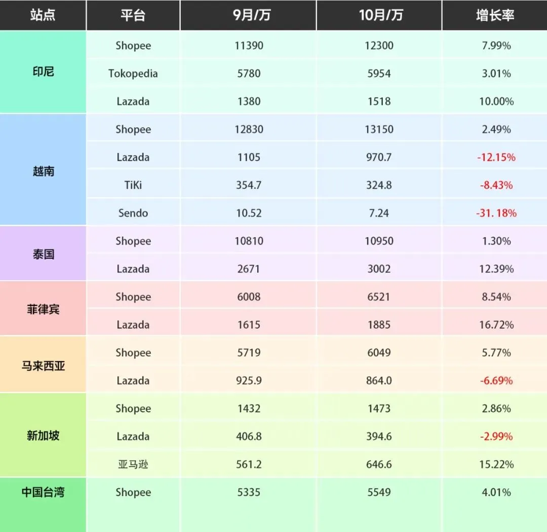 根据Similarweb最新数据显示,2025年10月东南亚电商平台的访问量整体重新回升,Shopee在所有站点均实现了环比增长,其中印尼站和菲律宾站表现尤为抢眼,分别增长了7.99%和8.54%。