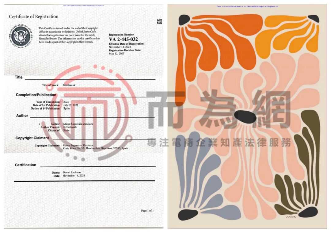 【侵权快讯】25-cv-10108 西班牙艺术家Maore Zurutuza版权发案!涉及两张花卉、迷幻图案元素图片!