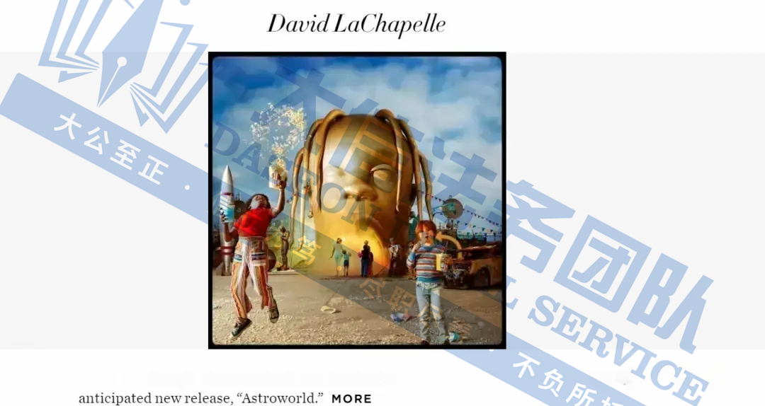 原告是美国的超现实主义摄影师、导演,被誉为摄影界的达利。曾为《Vogue》、《Vanity Fair》等杂志拍摄,合作过麦当娜、Lady Gaga等巨星,并执导布兰妮、艾尔顿·强等明星的MV。他的作品巧妙地将超现实主义与流行文化元素熔于一炉,在色彩运用上极为大胆奔放,构图充满戏剧张力,画面风格更是富有强烈的叙事感,这些特点都成为其作品鲜明的标识。