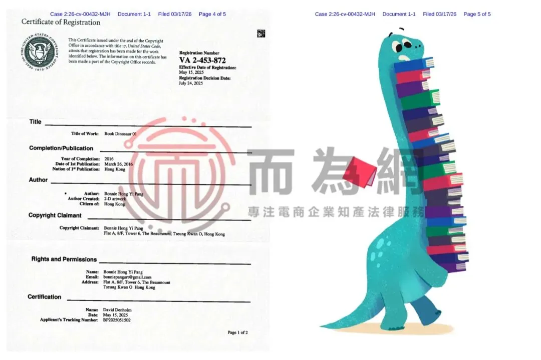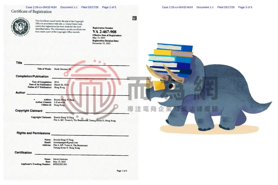 【侵权快讯】26-cv-00432 Ference律所全新版权案!插画师Bonnie Hong Yi Pang发起维权,2张作品严禁擅自使用!