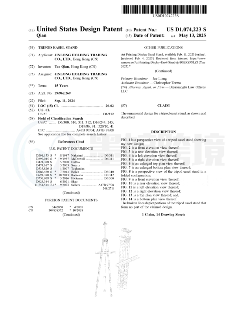 三脚架画架作为常见美术工具,看似普通,但品牌方已在相关平台上进行知识产权布局。跨境卖家在选品时,应注意核查商标或外观设计是否受保护,避免因侵权风险导致店铺被冻结或下架。