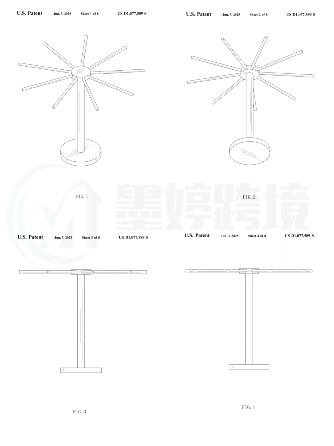 本案为专利侵权,涉及原告旗下1个外观设计专利,专利号:US D1,077,589S,于2025年6月3日下证;