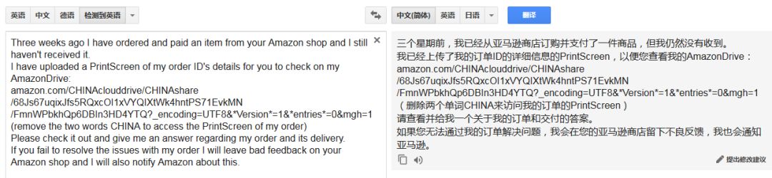 以德国站为例,许多从事欧洲站的卖家近期都收到了这么一份奇怪的邮件,一个以买家的口吻要求打开这个链接,否则在卖家的店铺留不良反馈。