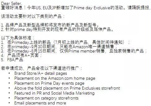 Prime day推出了新玩法 临近Prime会员日还有2个月的时间,亚马逊又推出了Prime day Exclusive的活动,按照亚马逊的官方规定要求,需要在Primeday上线的新品,需要有A+页面和FBA产品。 申请成功的,可以获得更大量的曝光计划,不过相信经费也是要燃烧。 姐夫总是喜欢在关键的时刻撸羊毛!