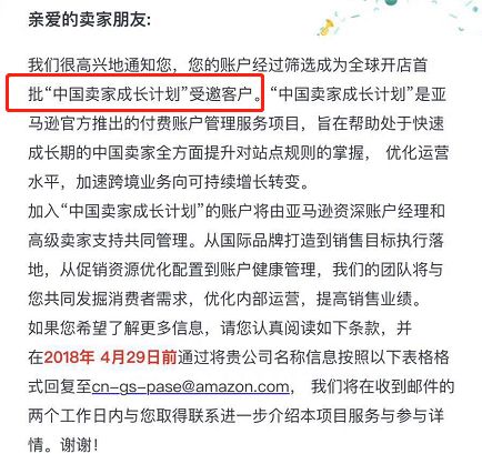 亚马逊开始推广中国卖家成长计划 一般一年以上的活跃的美国站账号,都能收到这封邀请邮件。 看到这,先别高兴的太早,我们再来看看收费! 最便宜的也要一个月上万RMB。