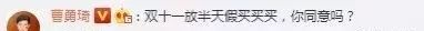 此外,马云还表示,由于今年“双11”恰逢周一,很多网友第二天还要早起上班,没有办法像往年一样熬夜“剁手”,“希望未来‘双11’国家也能给放半天假”。