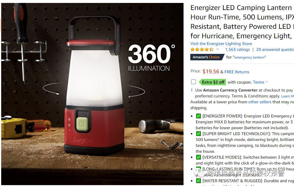 所以,在美国销售同款露营灯是有侵权风险的。