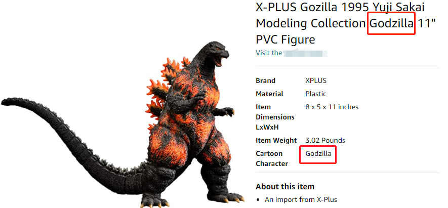 Toho Co., Ltd.在八月已经立案4次了,截止目前为止仍有不少的卖家在出售哥斯拉,估计9月会继续起诉侵权者,建议未获得授权的卖家下架产品哈。