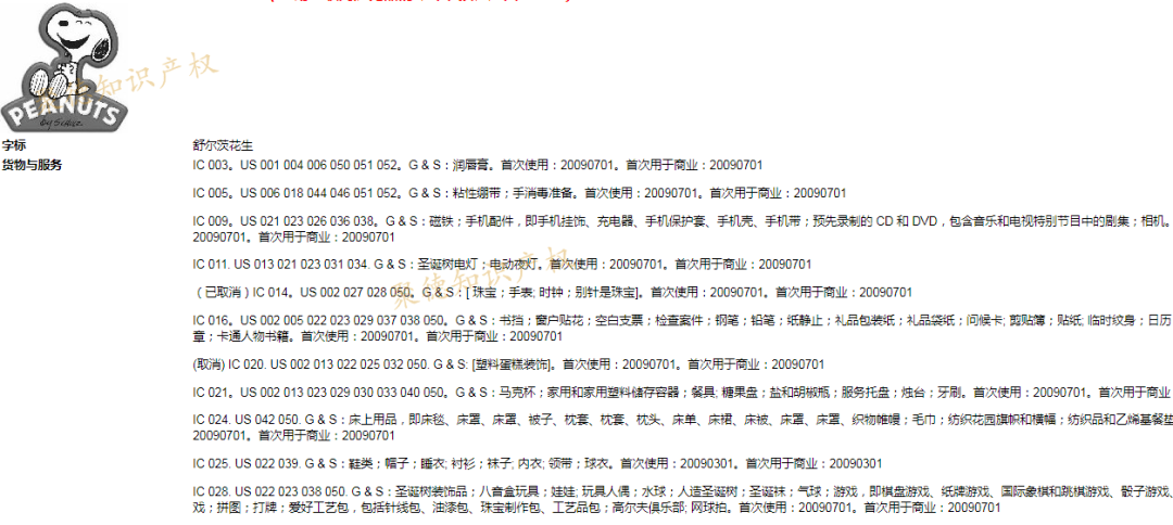 该品牌方已注册的美国商标类目包括:9类、16类、20类、25类、41类等,比如:照片、衬衫、录音带等。