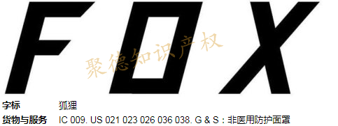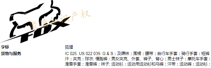 该品牌方已注册的美国商标类目包括:9类、16类、18类、25类、35类,比如服装、运动包、护具、摩托车头盔、运动护目镜等。