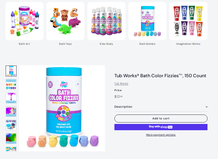Tub Works的品牌和其 Bath Color Fizzies 产品的包装和名称具有清晰的商标与版权标识,受法律保护。跨境卖家若未经品牌方授权在产品标题、包装或Listing中使用该名称或相似概念,存在被投诉或触发TRO(临时限制令)风险。