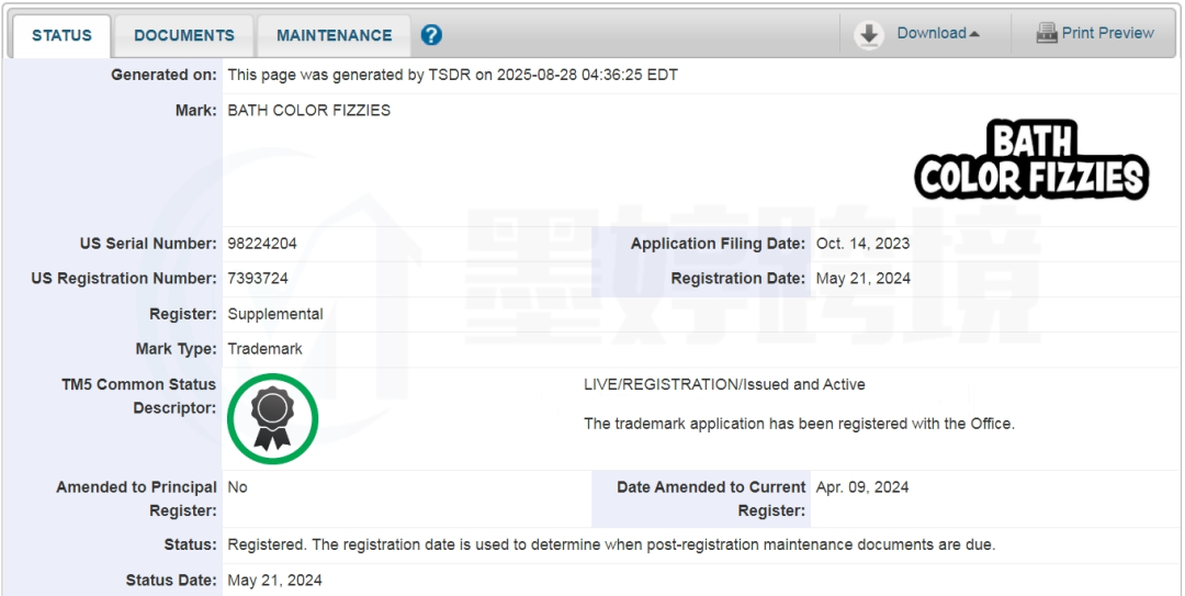本案为商标+版权侵权,涉及原告旗下3个图文商标,维权关键词:DESIGNED FOR BATHTIME、BATH COLOR FIZZIES、TUB WORKS,注册在美国商标第2类(涂料、颜料、染料、清漆、墨水等化工类涂装和着色产品)、第3类(化妆品、香水、护肤品、清洁用品、精油等日化用品)、第16类(纸张、文具、印刷品、办公用品、包装材料等)、第28类(玩具、游戏器具、运动用品、健身器材等娱乐休闲产品);